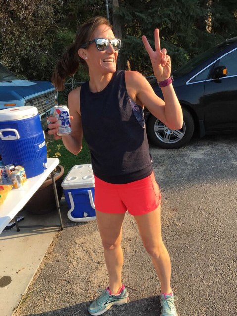 Coming in for the win! Who has form this good after four beers? This superstar! Beer mile champ x 2.